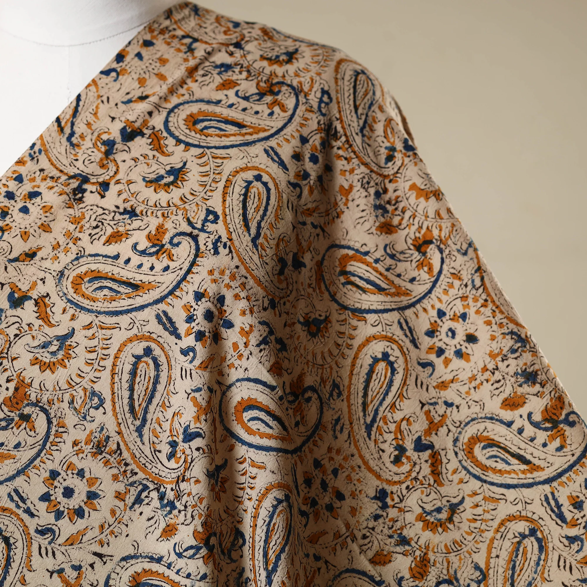 Experience the charm of Indian block printing with this beautifully crafted beige cotton pedana kalamkari fabric. Adorned with traditional motifs and created using natural dyes by Pedana’s master artisans, it reflects both beauty and sustainability. Ideal for making distinctive garments or elegant home decor.