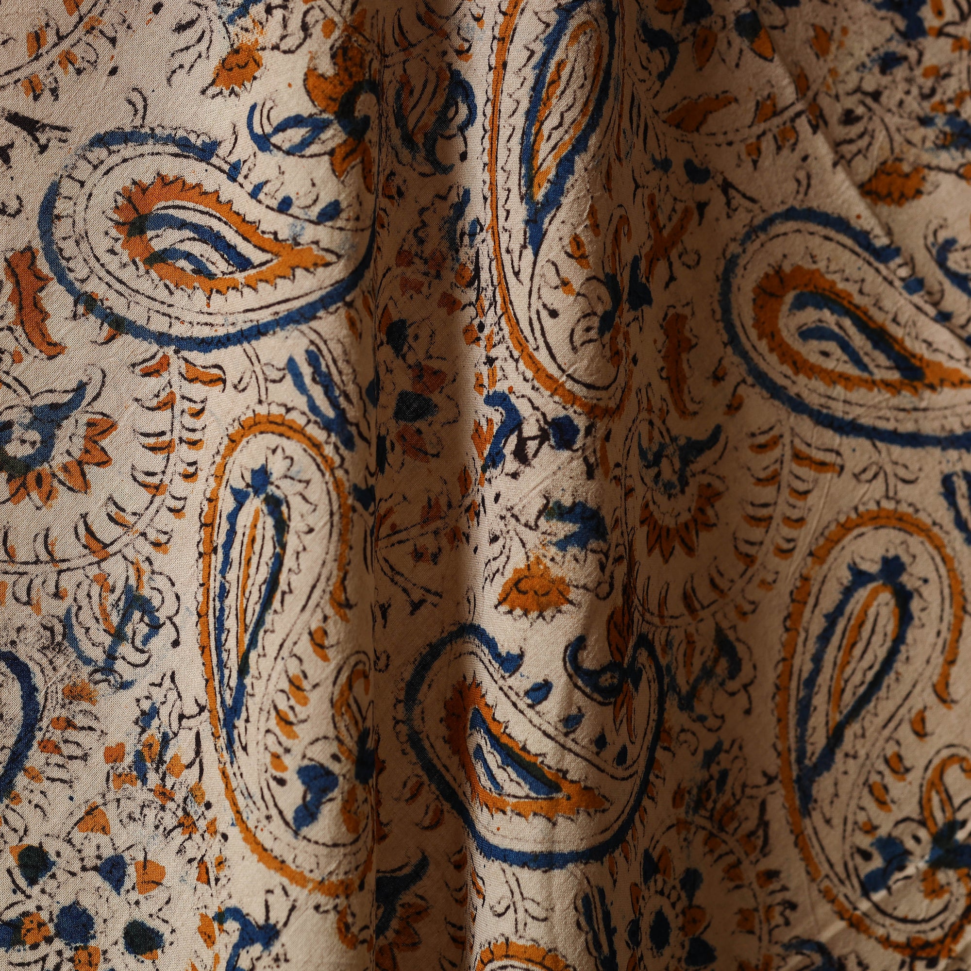 Beige – Natural Dyed Block Print Cotton Pedana Kalamkari Fabric