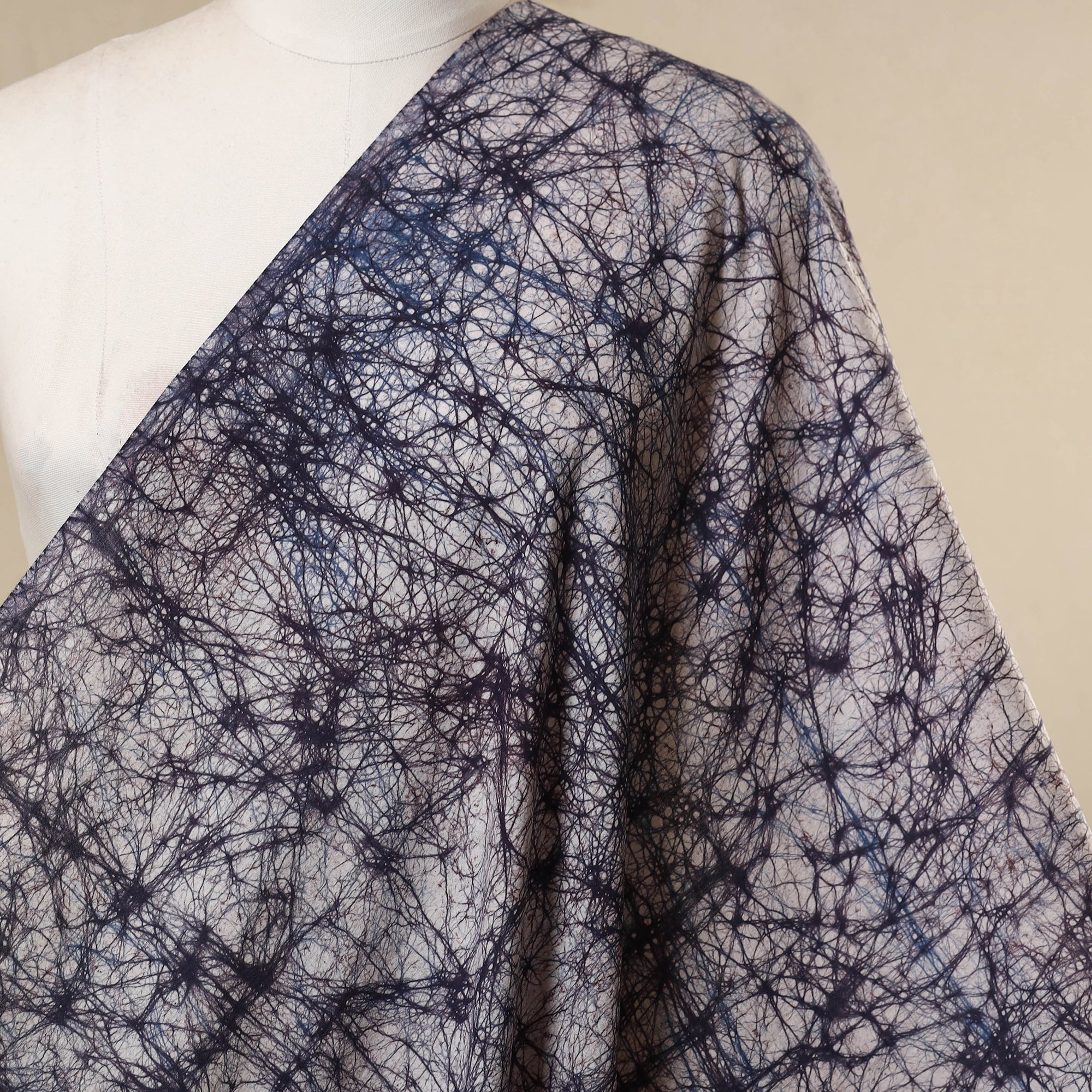 Elevate your creations with this blue cotton batik print fabric, crafted by Shakil Ahmed Khatri from Kutch. Batik, the age-old wax-resist dyeing technique, lends the textile its layered textures and intricate motifs. Every yard reflects the heritage of Indian artisans, making it an ideal choice for distinctive apparel or elegant home décor projects. |